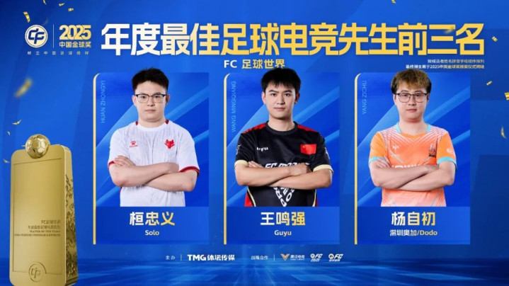 2025年度最好足球电竞先生(FC 足球全国)前三名:桓忠义、王鸣强、杨自初