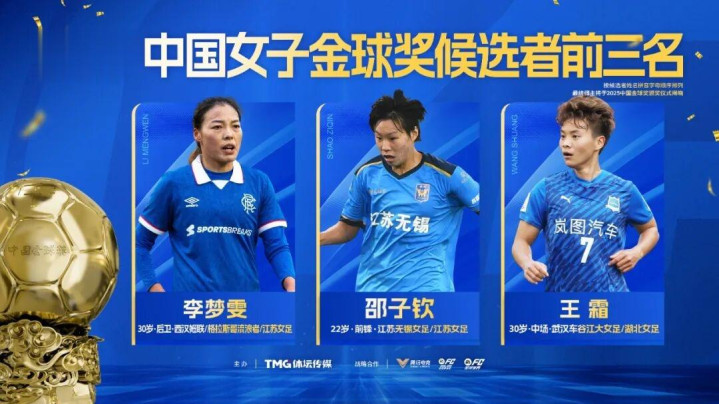 2025中国女子金球奖候选者前三名:李梦雯、邵子钦、王霜